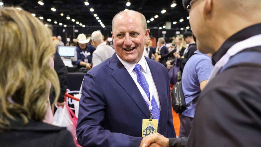 Gregory Abel, Vice Chairman overseeing non-insurance operations for Berkshire Hathaway, meets shareholders in the exhibition hall during the Berkshire Hathaway Inc annual shareholders’ meeting in Omaha, Nebraska, U.S., May 3, 2024.Â