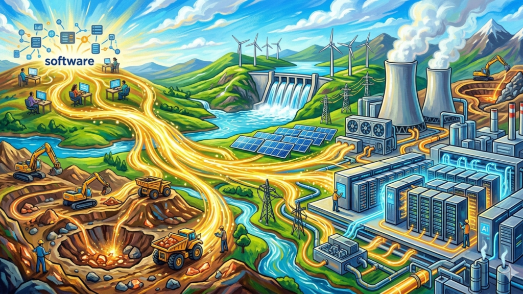 The Re-Materialization is a fundamental inversion of where value accrues in the economy – from digital services back to physical infrastructure, raw materials, and hard assets.