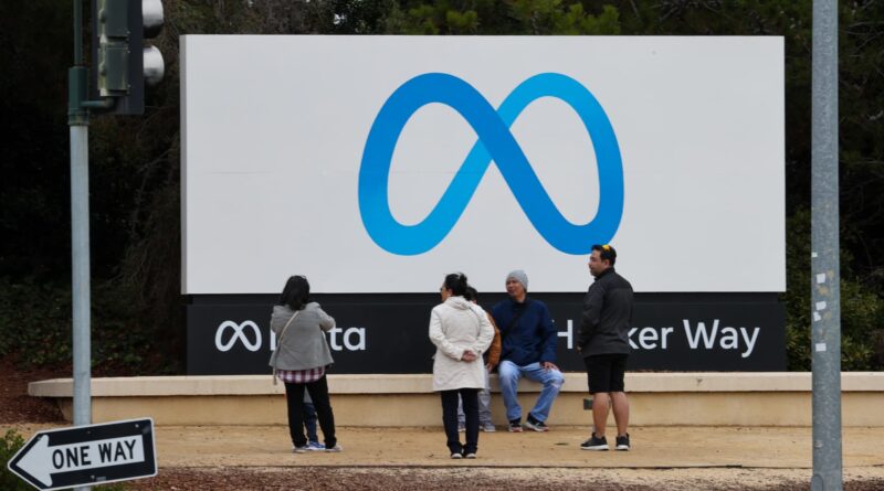 Read MoreVisitors take photos in front of the Meta (Facebook) sign at its headquarters in Menlo Park, California, on December 29,